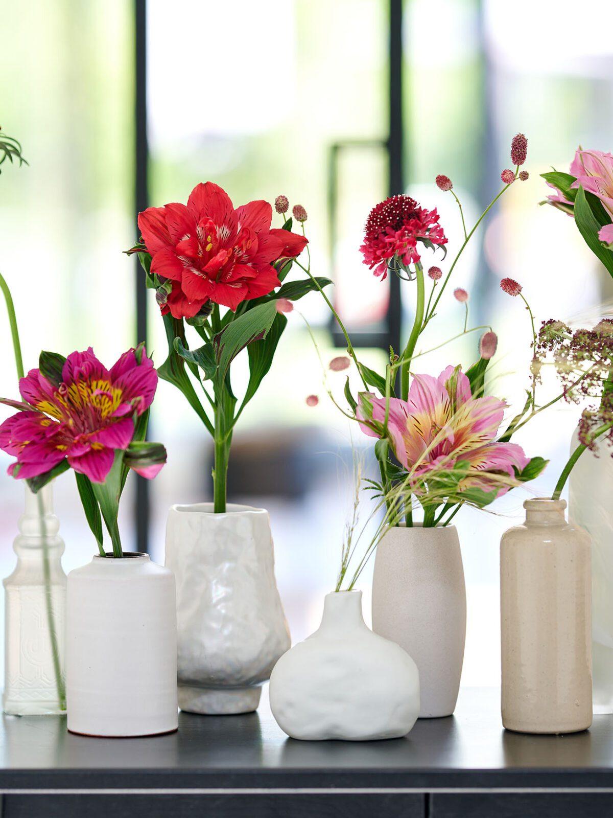 Styling idea! Try putting a single XL stem in a tall bottle-shaped vase. You will be amazed by the incredible number of flowers on one stem. If you want to emphasize the summer sweetness of the colour, display a few individual flowers in mini vases. Ever so sweet.