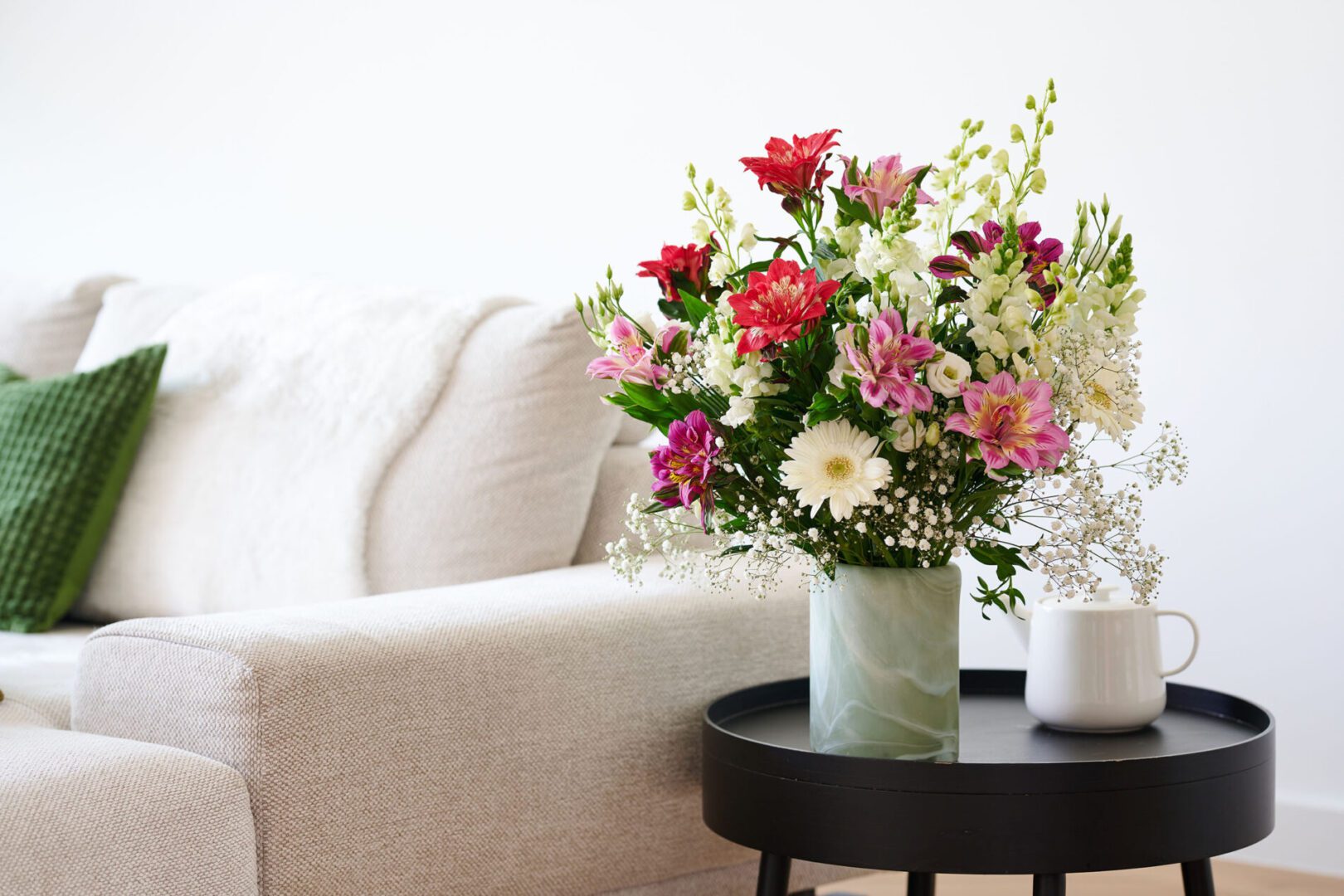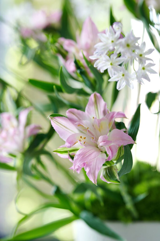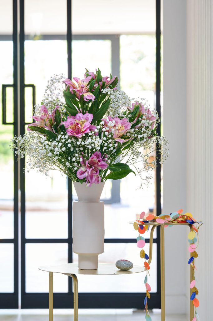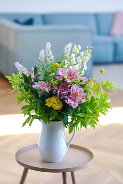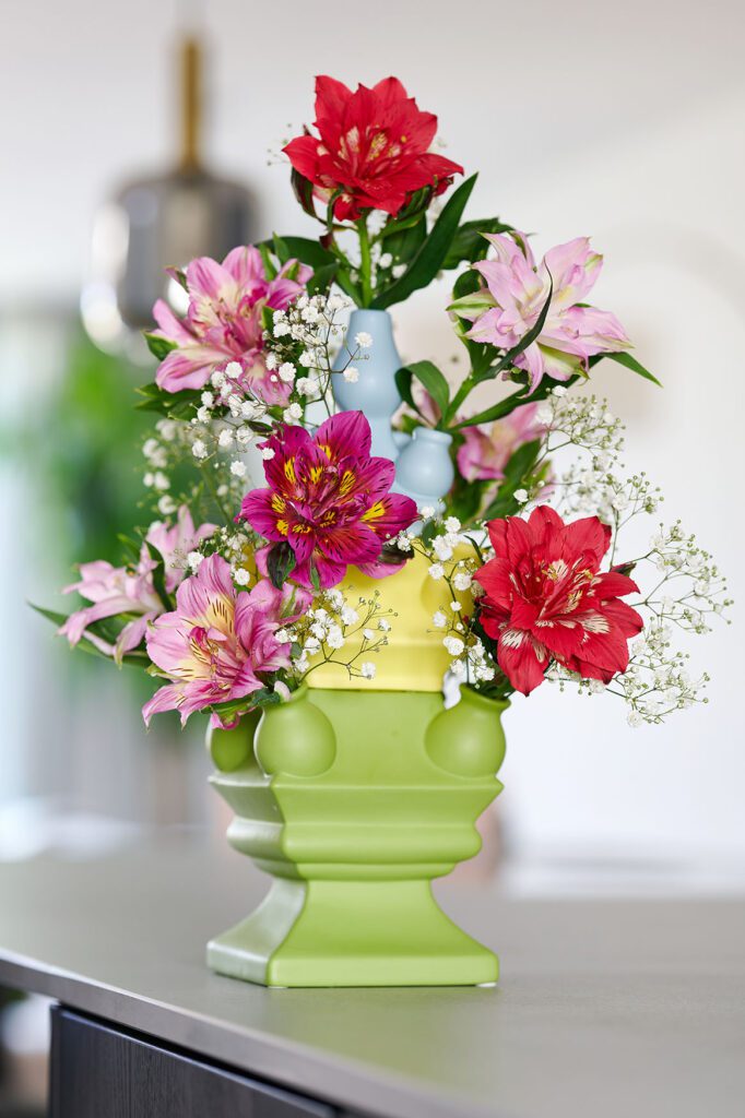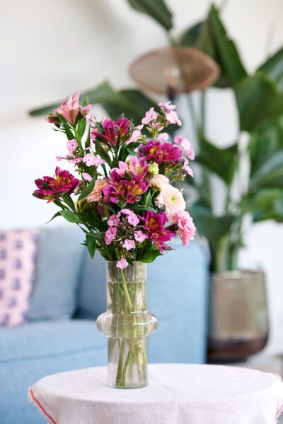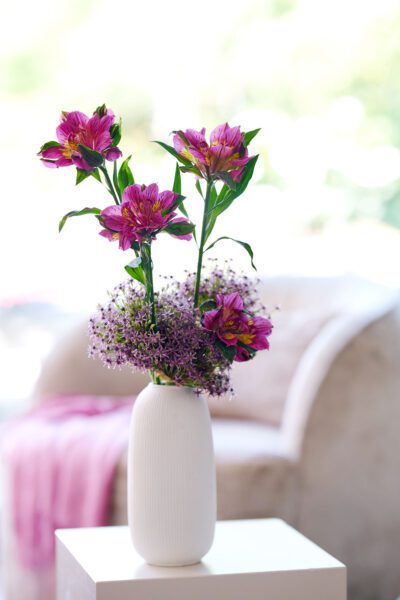 - Fill a collection of small vases with Astronova blooms in different colours, complemented by delicate field flowers in shades of red and pink.