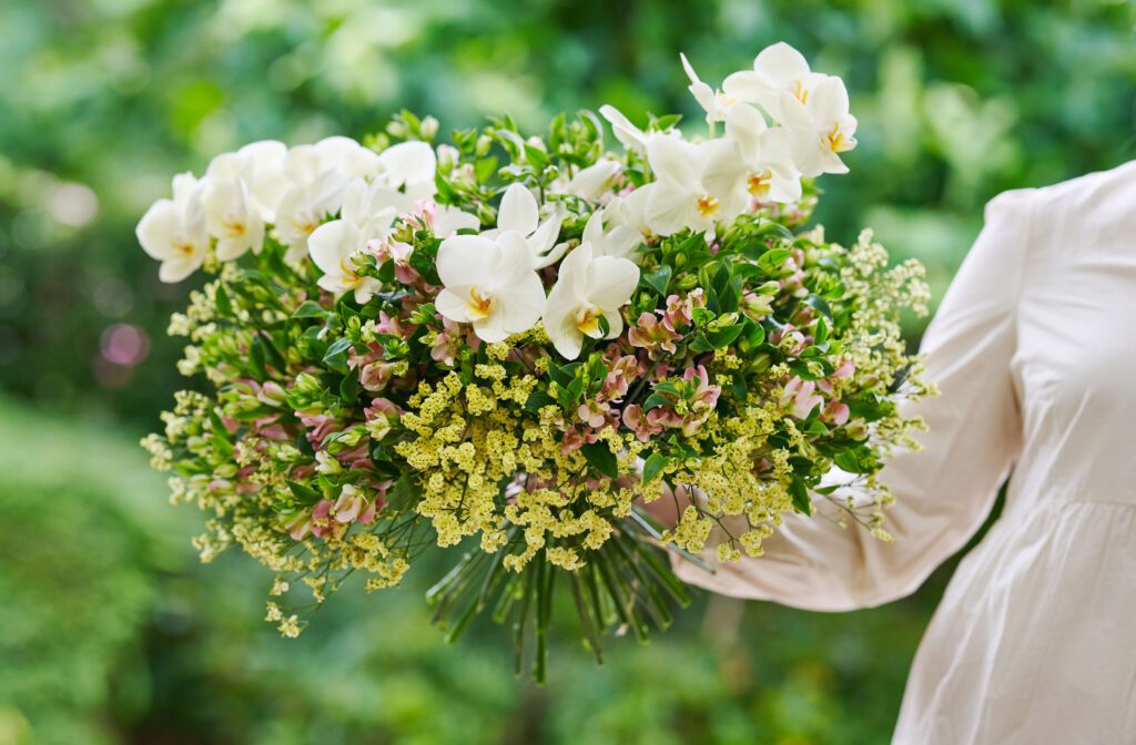 Idea! Charmelia is a strong flower that has a very long vase life. This makes it possible to offer the flowers to the guests at the end of the festive day. You could turn them into mini bouquets, for example. In this way, your guests can enjoy the flowers at home as well.