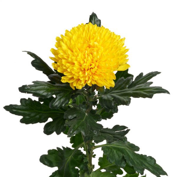 a robust disbudded chrysanthemum with an exceptionally long vase life. The combination of its large, sunny flower and mysterious, dark foliage creates a contemporary contrast and a splash of style. Leto is not just any flower… it is the star of any arrangement and effortlessly catches the eye even on its own. Thanks to great transport properties, Leto brings the sun within reach all year round. Let the radiant energy of this yellow disbudded chrysanthemum bring a touch of sunshine into your day. Bring summer into your home with Leto!