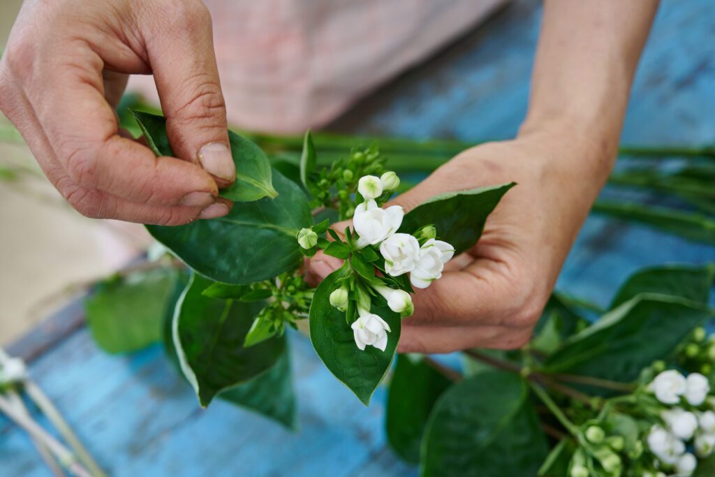 Step 2: Carefully clean the flowers. Remove excess leaves from the Bouvardia flowers, to show off the flowers themselves.