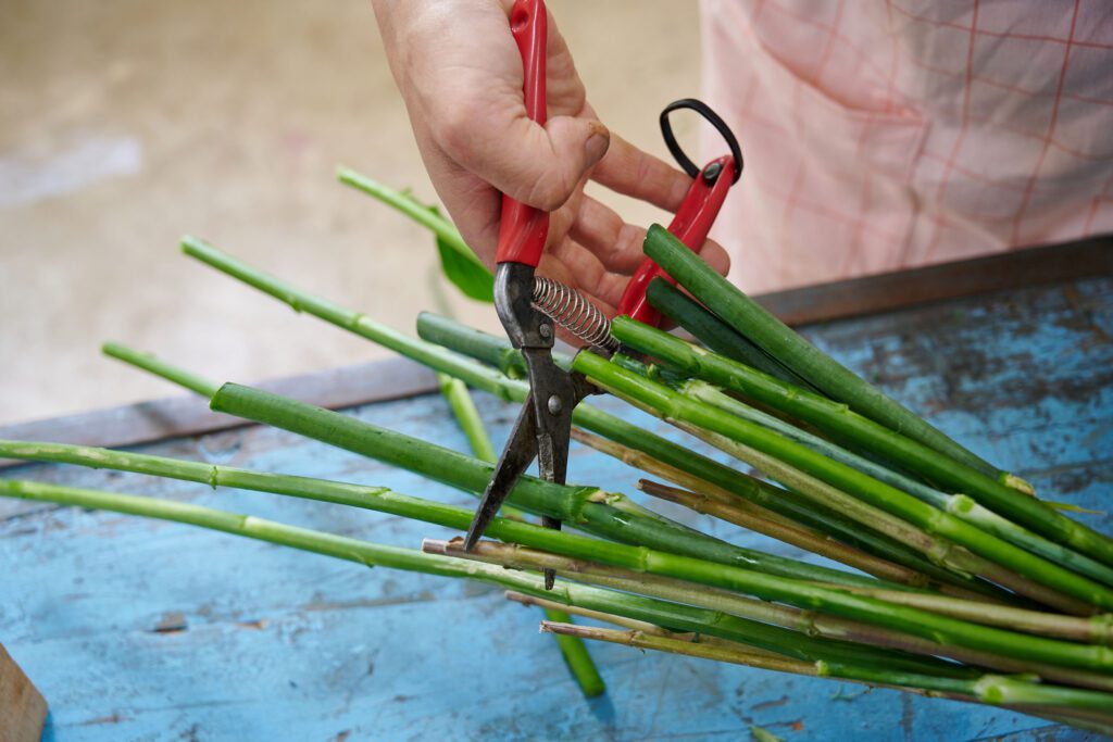 Point of attention: Make sure no leaves are present underneath the tying point.
