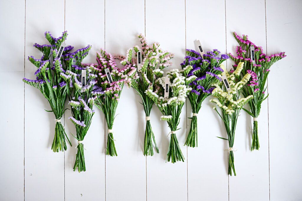Contemporary colours pack a new punch in our range. Besides the popular blue/purple, we now have a lot more lovely colours available in our range all year round. Statice stems are beautifully structured with lots of small flowers at the ends of the lateral branches, making her ideal for field bouquets.