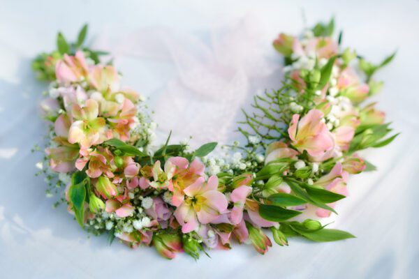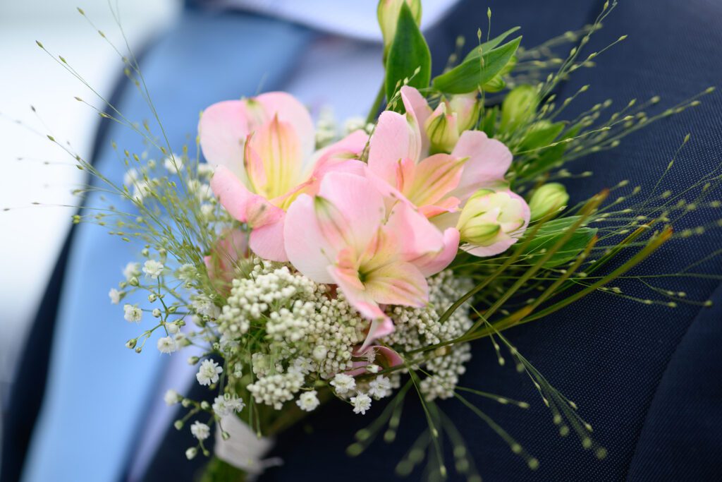 - If you’d rather not have a bridal bouquet, you could consider a hair ornament with flowers or a wrist corsage as an alternative.