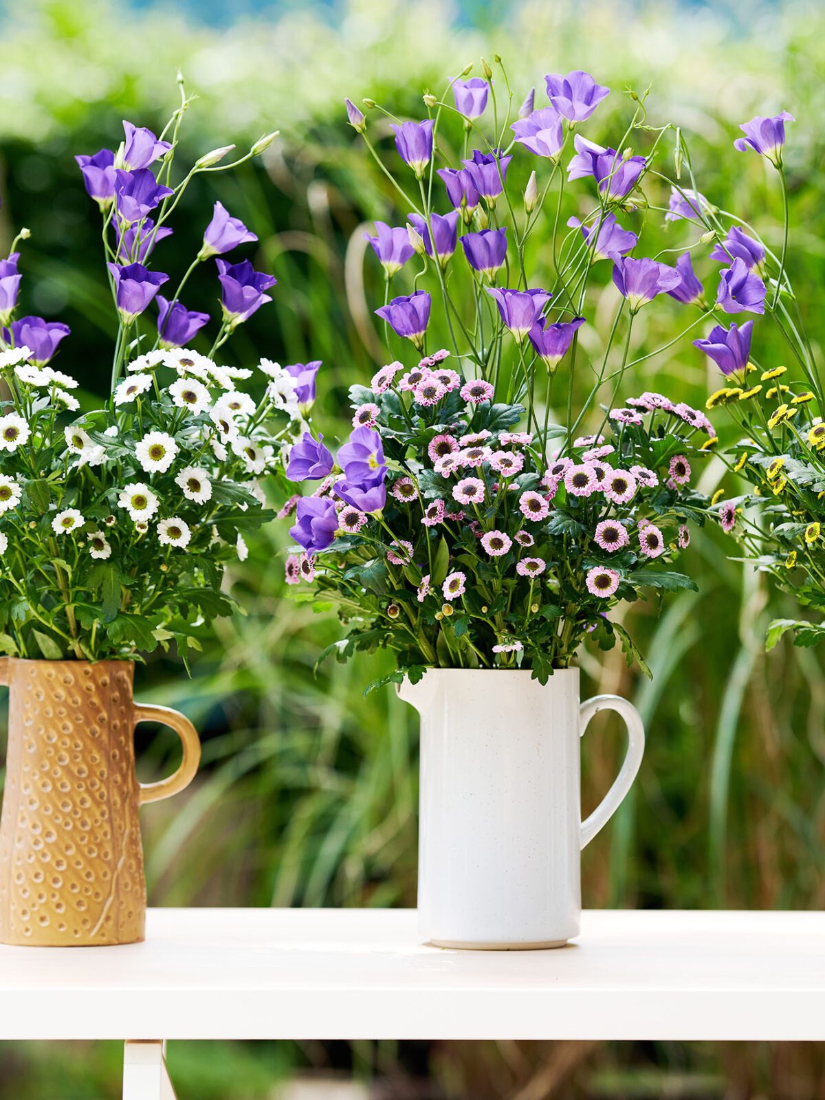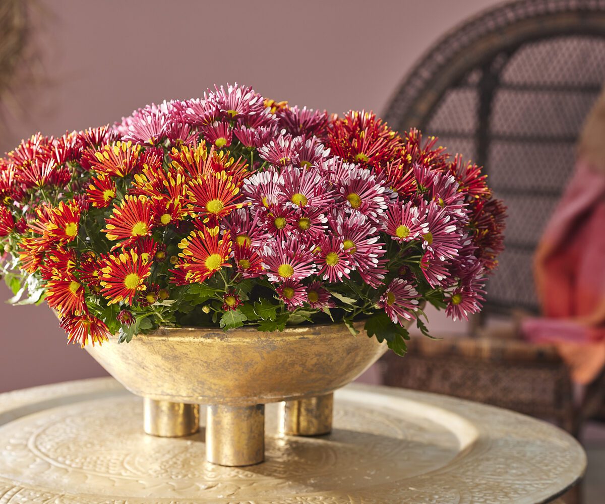 Pink Molly, Yellow Molly y White Molly. Con estos radiantes crisantemos tipo Santini de la familia Molly, nunca te cansas de variar y combinar.