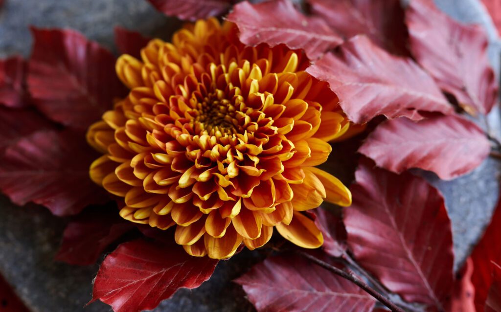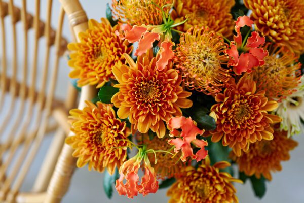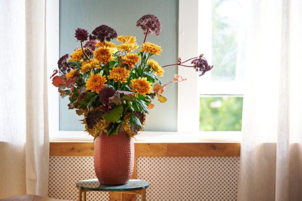 Desde una sola flor en un cuenco poco profundo hasta unos ramos de otoño bien abundantes. Con Bellavista, puede crear arreglos florales de una gran variedad de estilos y tamaños. Este versátil crisantemo estándar combina a la perfección con otras joyas del otoño, como frutos y bayas, ramas y otras flores de cálidos tonos otoñales.