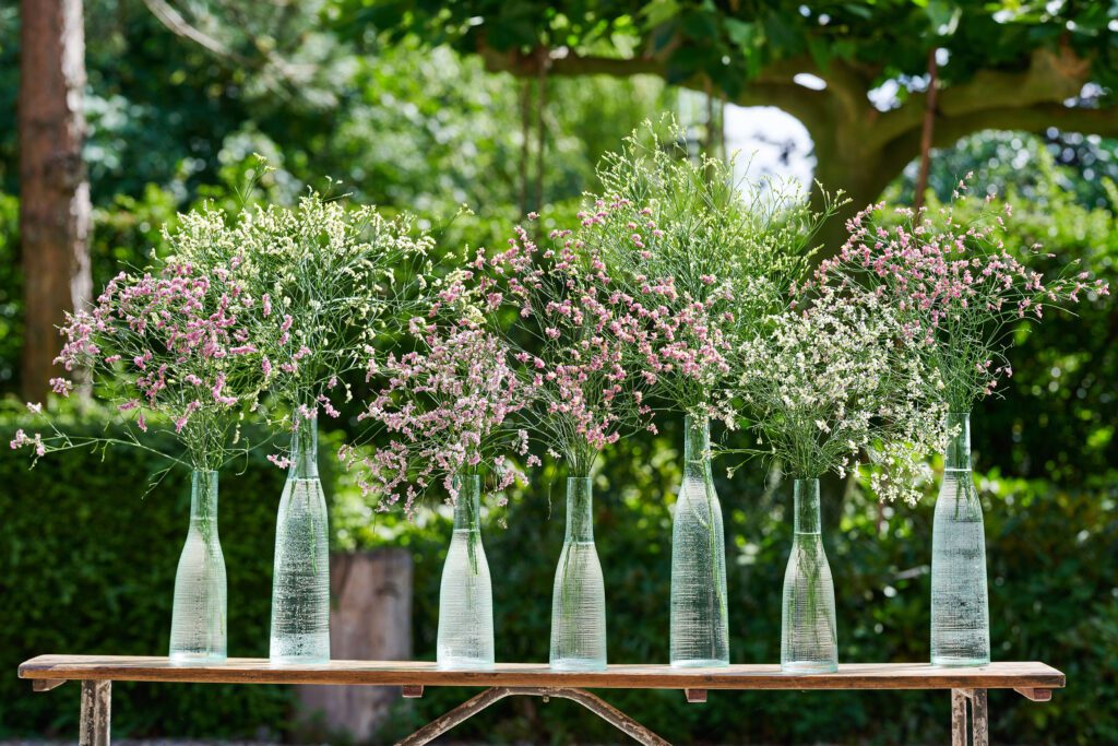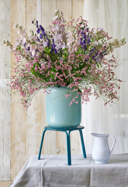 De cerca, las flores parecen muy frágiles y delicadas, pero adivina qué….. El Limonium es una flor superfuerte y versátil con un aspecto fresco y no sólo tiene una vida en jarrón muy larga, sino que también es perfecta como flor seca. Conserva su color durante mucho tiempo después del secado para que se pueda disfrutar al máximo.