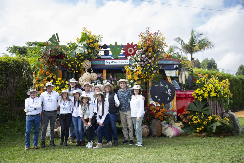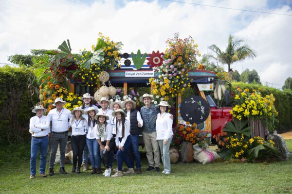 Durante la semana del crisantemo, muchos clientes de América Latina y USA han visitado nuestras pruebas en Royal Van Zanten. Los visitantes han tenido una bienvenida especial. Un vehículo típico colombiano conocido como «chiva», adornado con un encantador arreglo floral.