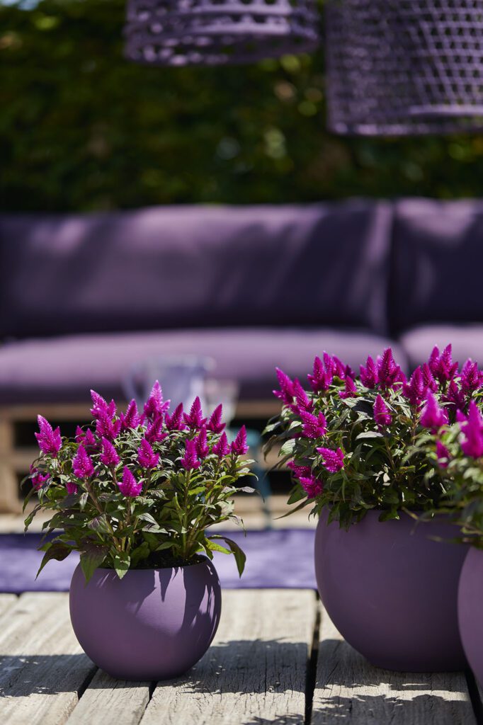 Van origine komt Celosia uit warme streken met veel zon en weinig regen. Dat heeft ’m sterk gemaakt. Zet Deep Purple dan ook gerust in de volle zon. Op je terras, in de tuin en zelfs binnen. Alles kan! Omdat het zo’n sterke en kleurrijke plant is, zie je Deep Purple ook vaak als kleuraccent in het openbaar groen. Tip! Deep Purple is leuk als zomers cadeau. De plant heeft een unieke uitstraling door de bijzondere kleur. En iedereen kan ’m verzorgen.