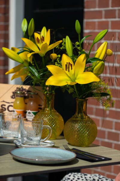 Als je deze kleur nu combineert met een bloem, waar je lang van kunt van genieten, net de juiste geur (bijna geurloos) afgeeft en iedere dag weer iets anders van zichzelf vrij geeft. Dan hebben we het natuurlijk over de lelie. Gecombineerd met de kleur geel, maakt: Cavalia!