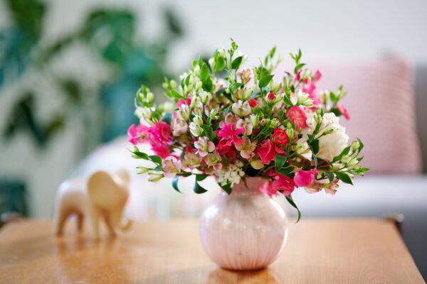 Binnen en buiten lopen steeds meer in elkaar over. Het is dus helemaal niet zo gek om een boeket op de buitentafel te zetten en bloeiende terrasplanten naar binnen te halen. Andersom mag natuurlijk ook. Kies voor dezelfde kleuren(mix) om eenheid te creëren tussen binnen en buiten. Zo vormt binnen en buiten samen één fleurige ruimte waar je kunt ontspannen en opladen.