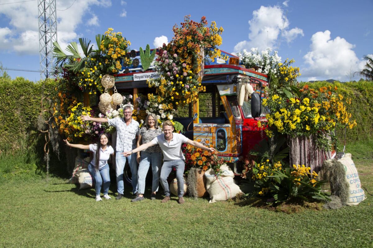 Tijdens de Chrysanthemum week veel klanten uit Latijns-Amerika en de USA bezochten onze trials op onze locatie in Colombia. Bezoekers kregen een wel heel bijzonder welkom. Een typisch traditioneel Colombiaans voertuig bekend als een ‘Chiva’ was aangekleed met een mooi bloemen arrangement.