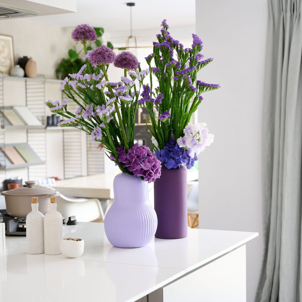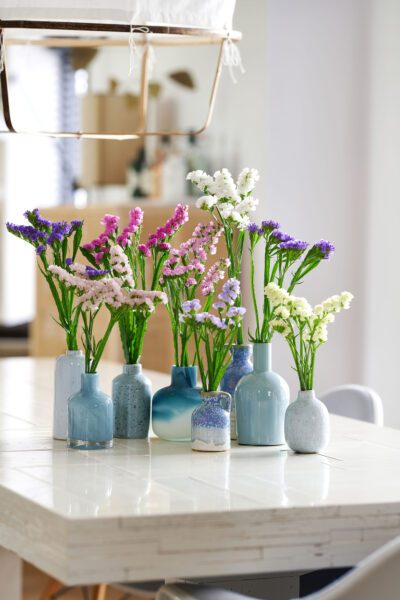 Eigentijdse kleuren zorgen voor nieuwe energie in het assortiment. Naast de bekende blauw/paarse kleur zijn er inmiddels jaarrond veel meer mooie kleuren verkrijgbaar binnen ons assortiment. De takken van Statice zijn mooi qua opbouw met bloemetjes aan het eind van de zijtakken waardoor ze ook heel geschikt is voor plukboeketten.