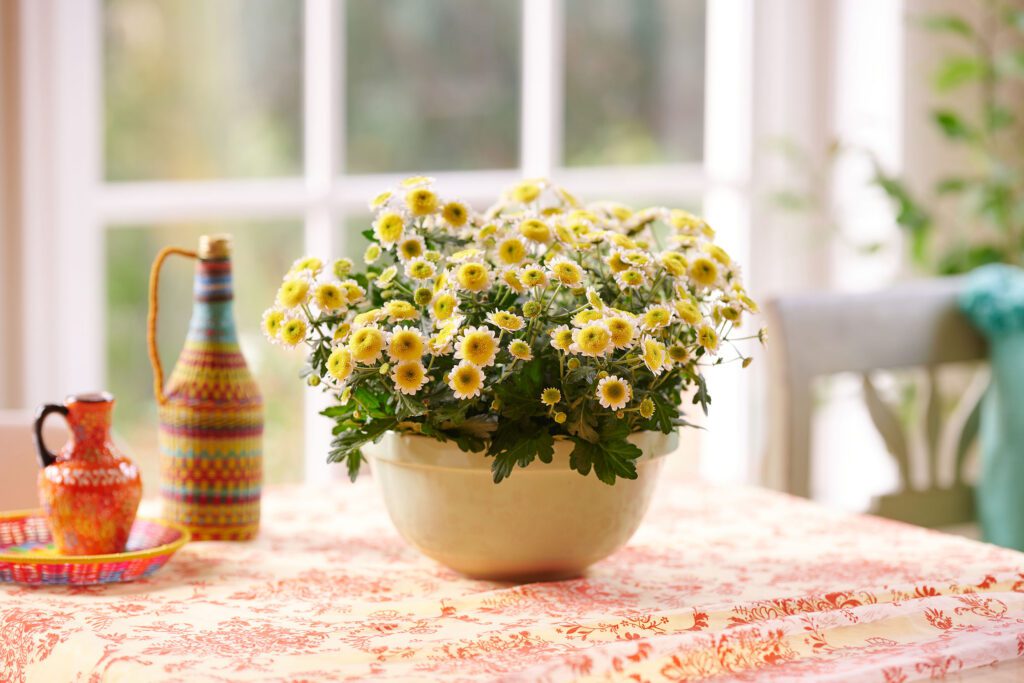 Wit en geel verwelkomen het voorjaar als geen ander. Geen enkele andere kleur brengt zoveel frisheid met zich mee; ideaal ook voor Pasen! Denk aan prachtige boeketten en sfeervolle tafeldecoraties voor in huis of creëer eye-catching potplantenarrangementen die de tuin tot leven brengen! Op de paastafel mag Sun Up niet ontbreken; deze witte santini’s met knalgeel hartje zijn net kleine spiegeleitjes. Voor paasdecoraties met een iets chique, warme uitstraling kun je kiezen voor crème tinten.